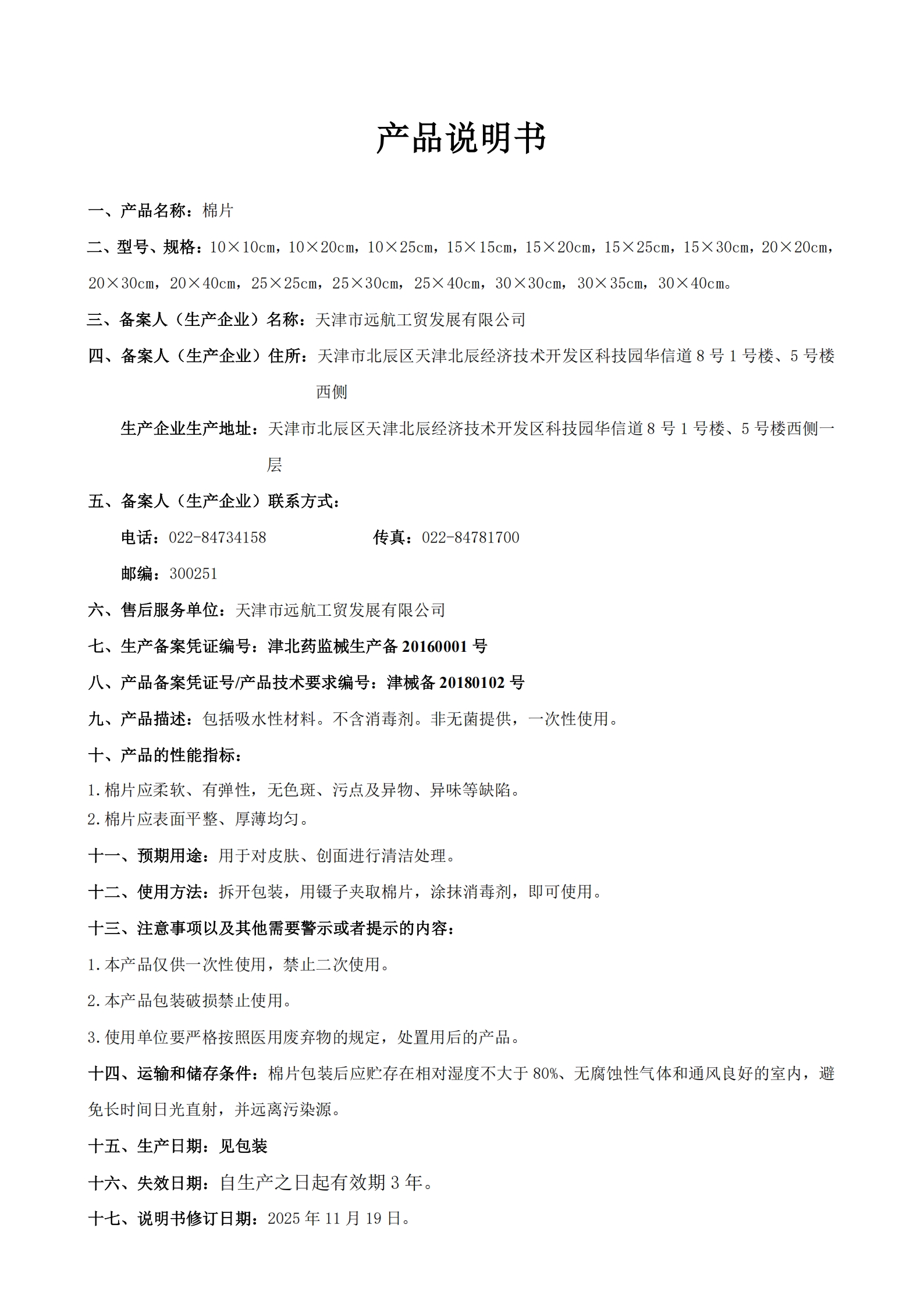 产品说明书