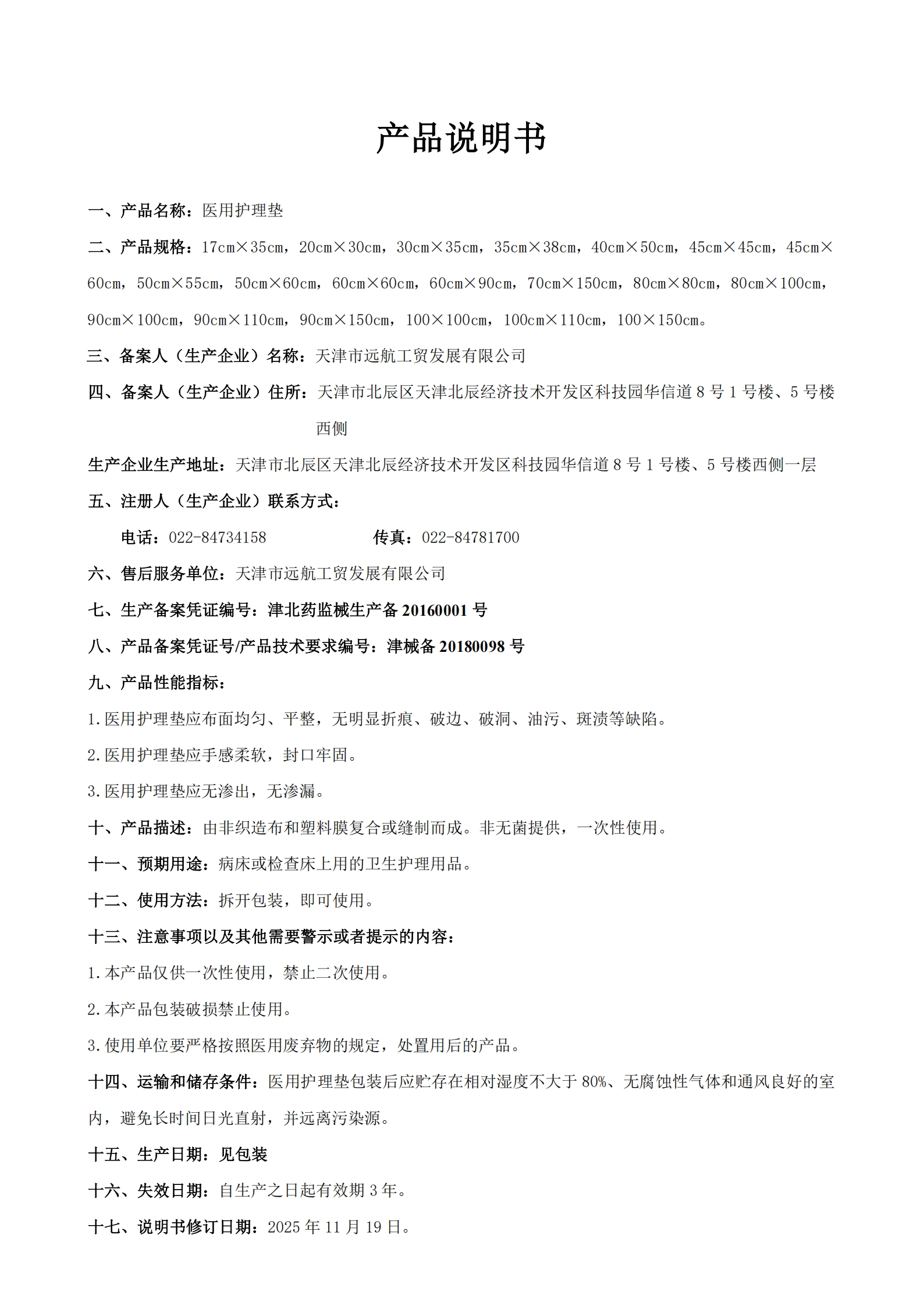 产品说明书