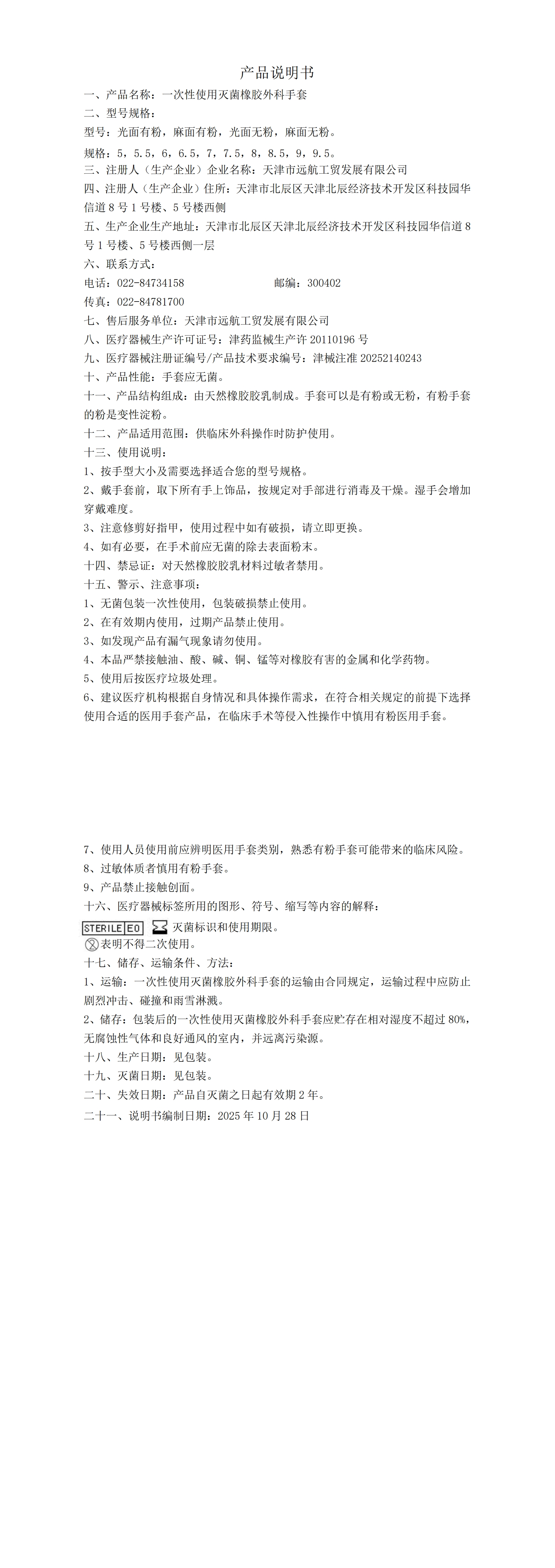 一次性使用灭菌橡胶外科手套2510